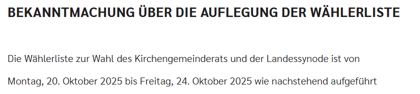 16. November 2025, der Kirchengemeinde des Nebenwohnsitzes mitteilen.