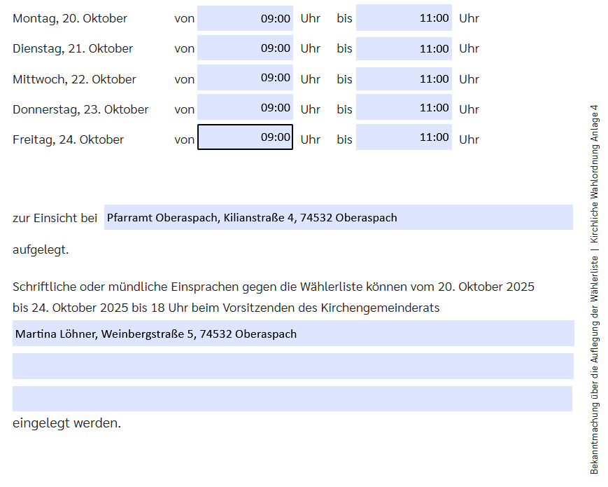 Die Entgegennahme von Wahlbriefen erfolgt durch das geschäftsführende Pfarramt,